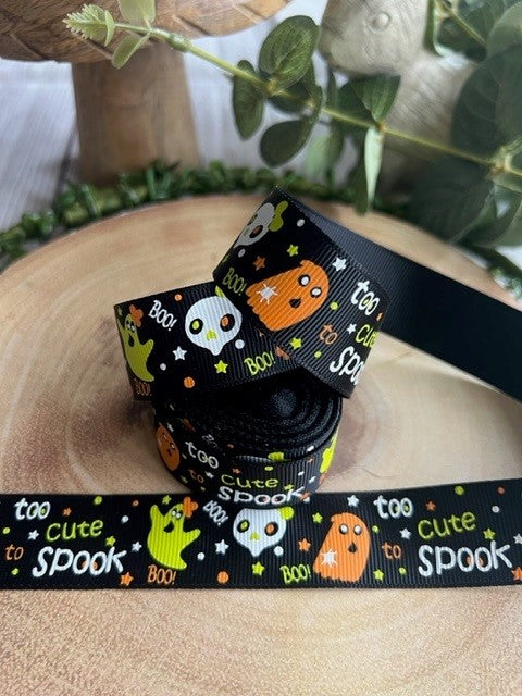 Beautiful Black Halloween 'Too Cute To Spook' Design Grosgrain Ribbon