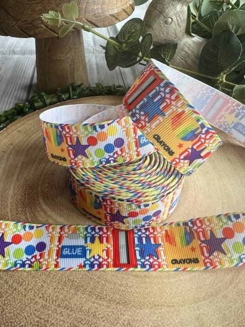 Beautiful Bright Coloured Art Supplies Print Design Grosgrain Ribbon