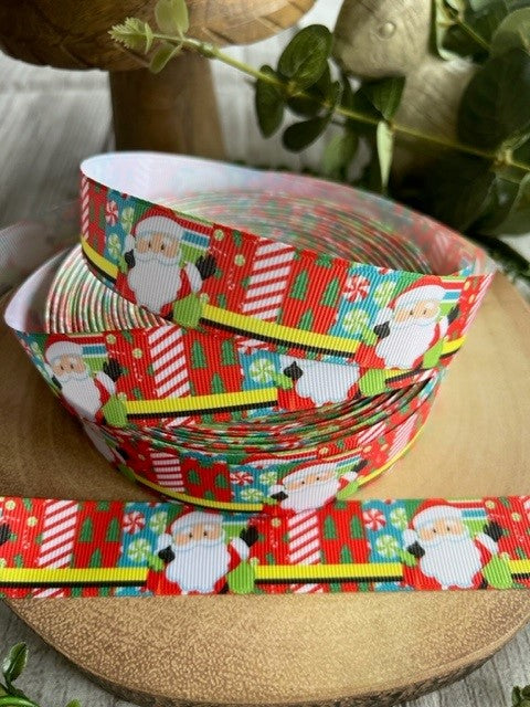 Beautiful Bright Coloured Father Christmas Design Grosgrain Ribbon