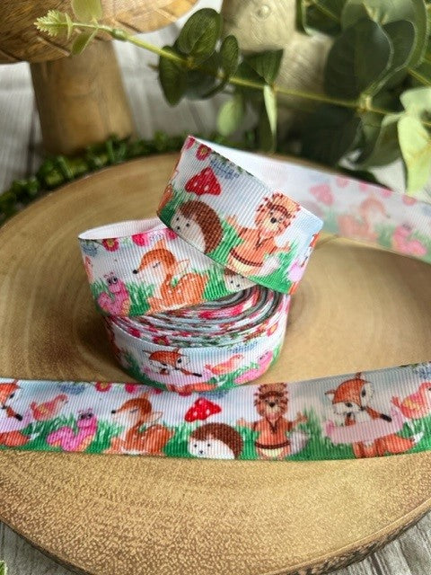 Beautiful Bright Coloured Forest Animals Print Design Grosgrain Ribbon