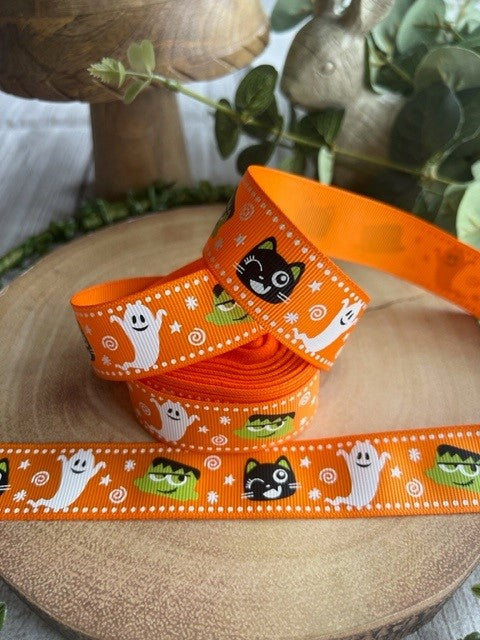 Beautiful Bright Orange Halloween Characters Design Grosgrain Ribbon