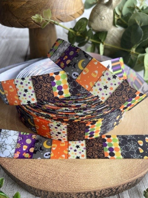 Beautiful Bright Halloween Themed Tile Print Design Grosgrain Ribbon