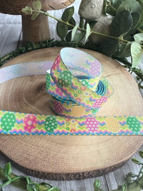 Beautiful Bright Coloured Patterned Easter Eggs Design Grosgrain Ribbon