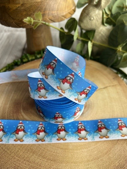 Beautiful Bright Christmas Penguins Design Grosgrain Ribbon