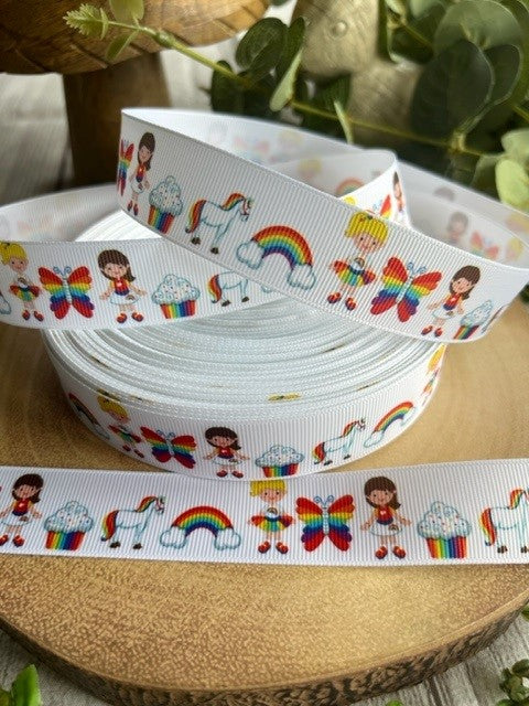 Beautiful Bright Coloured Rainbow Girls Print Design Grosgrain Ribbon