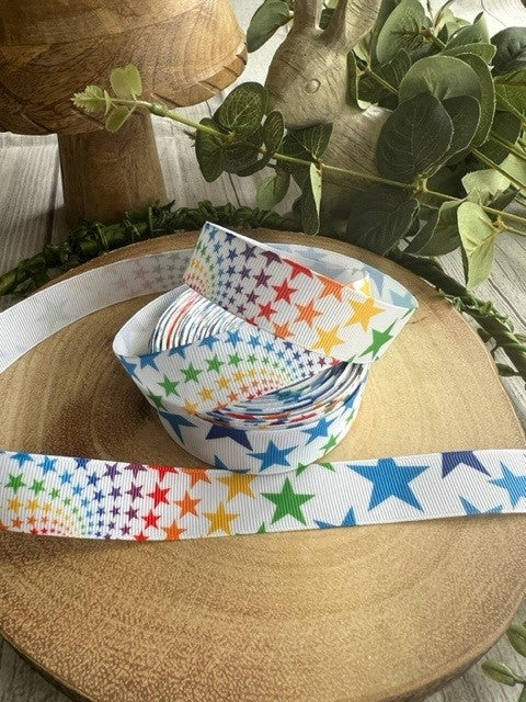 Beautiful Bright Coloured Rainbow Stars Print Design Grosgrain Ribbon