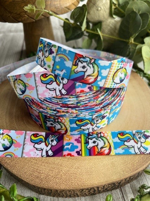 Beautiful Bright Coloured Rainbow & Unicorn Print Design Grosgrain Ribbon