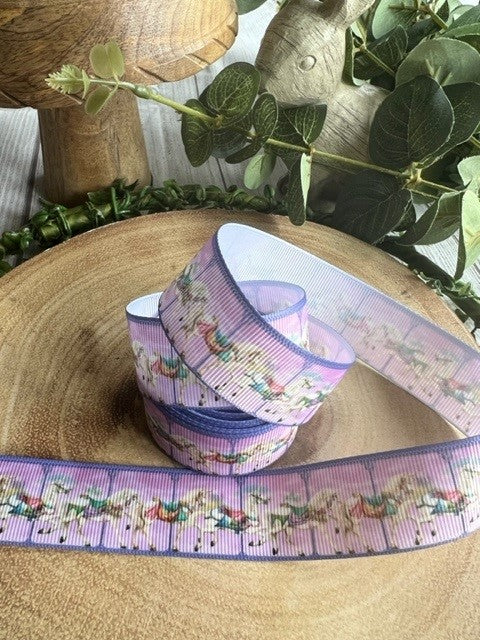 Beautiful Pretty Pastel Carousel Print Design Grosgrain Ribbon