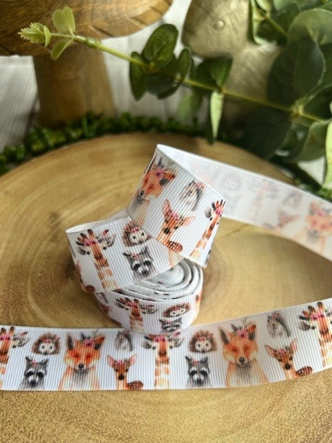 Beautiful Pastel Pretty Woodland Animals Print Design Grosgrain Ribbon