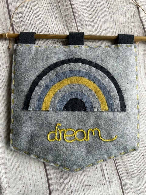 Handmade Felt Grey & Yellow Rainbow & Dream Themed Banner