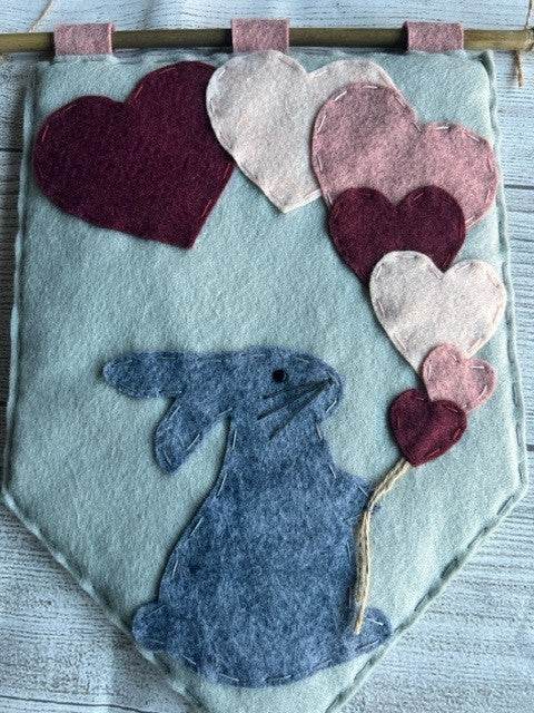 Handmade Rabbit With Heart Balloons Banner Gift