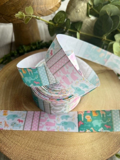 Beautiful Pastel Coloured Zoo Animals Print Design Grosgrain Ribbon