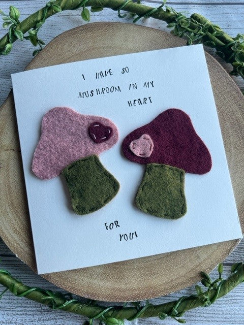 Handmade Felt 'Mushroom In My Heart' Unique Love Themed Greeting Card