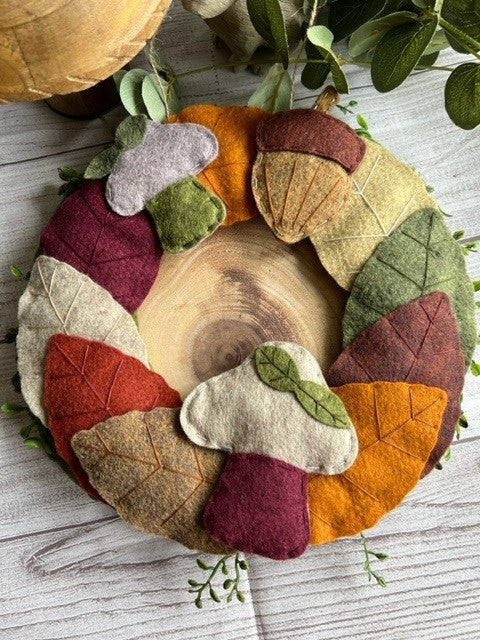 Handmade Leaf Acorn & Mushroom Felt Wreath
